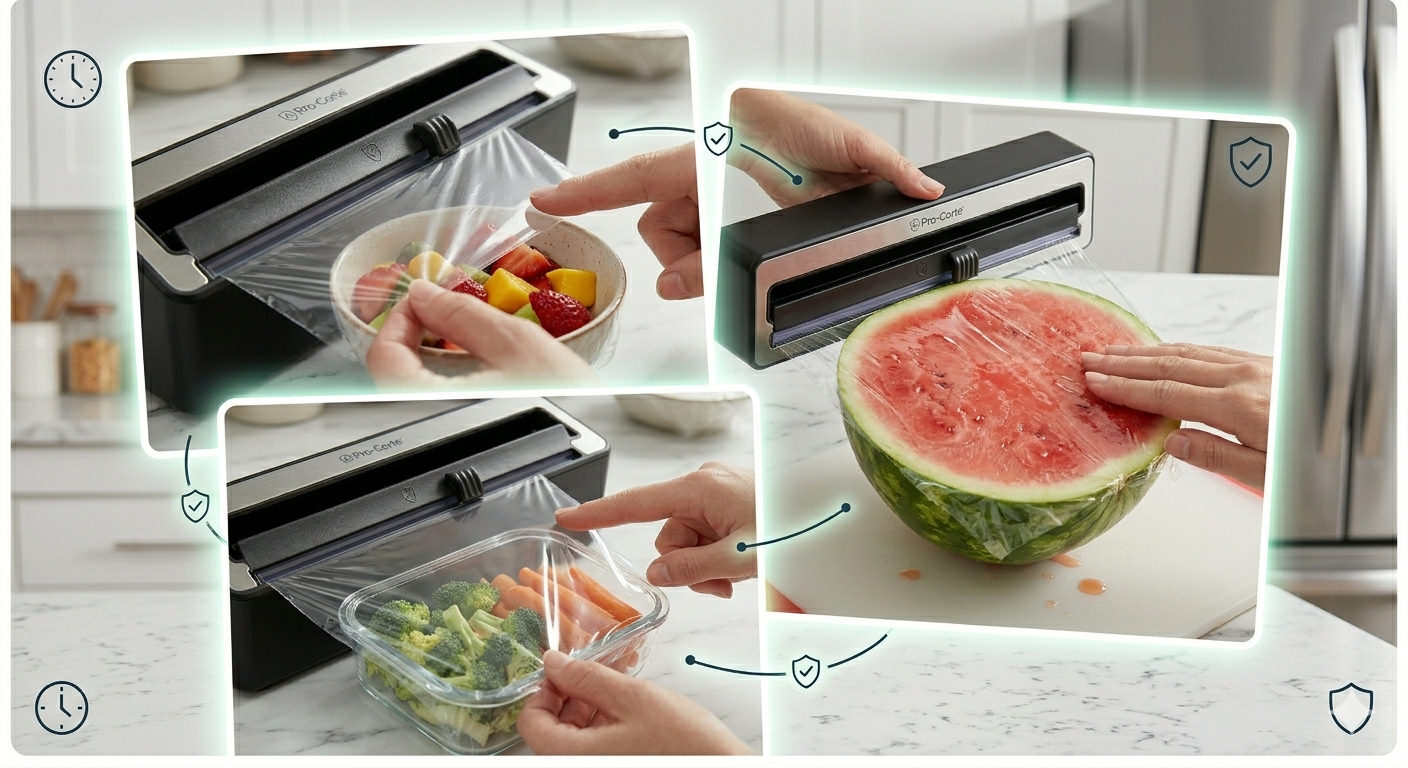 Ya sea para sellar media fruta, cubrir un bowl gigante o preparar la vianda del día, su tamaño compacto de 37 cm se adapta a los rollos estándar del mercado. Es la herramienta definitiva para quienes valoran la frescura y la organización.